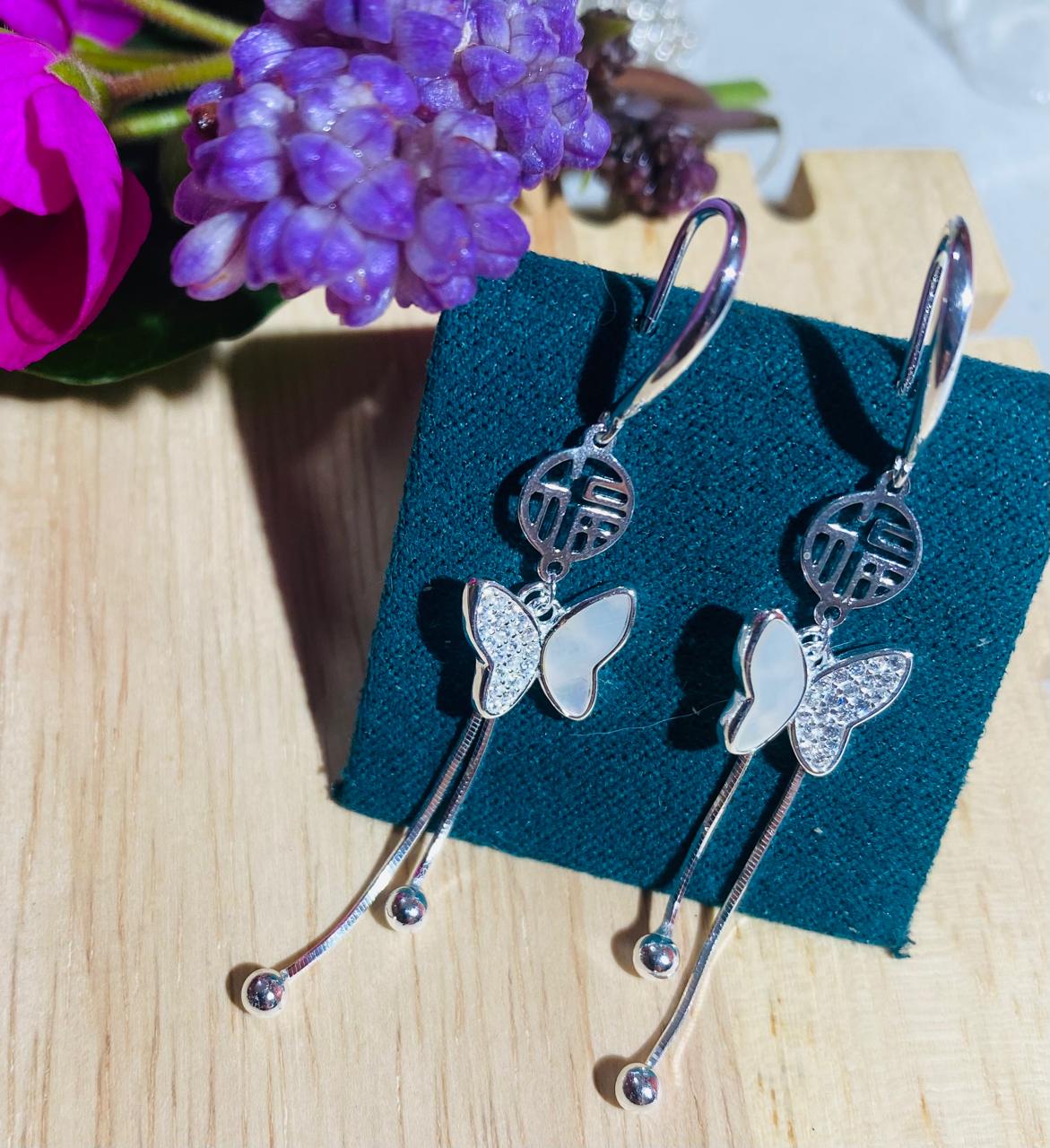 Aretes largo con mariposa con circonias