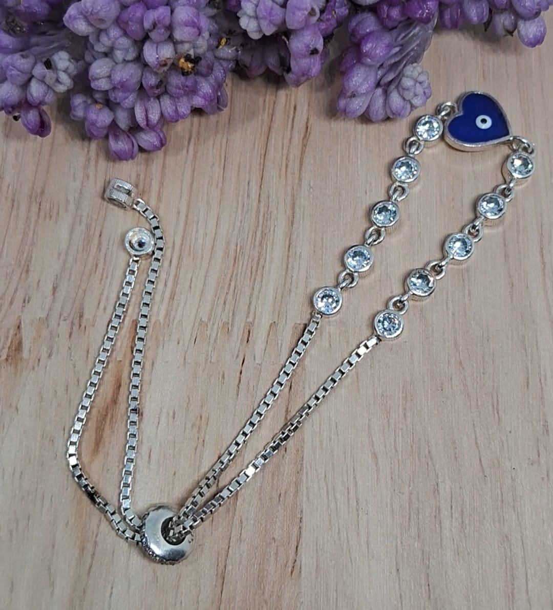 Pulsera Ajustable corazon ojo turco y circonia